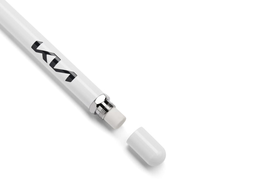 Długotrwały styl i wygoda. Precyzyjny jak dobrze naostrzony, twardy ołówek, pisze szarym kolorem i zawiera ukrytą gumkę. Podczas pisania na papierze pozostają bardzo drobne drobinki specjalnego stopu i grafitu, co umożliwia jego trwałe użytkowanie. W kolorze białym z logo Kia. W komplecie z markowym pudełkiem upominkowym Kia.